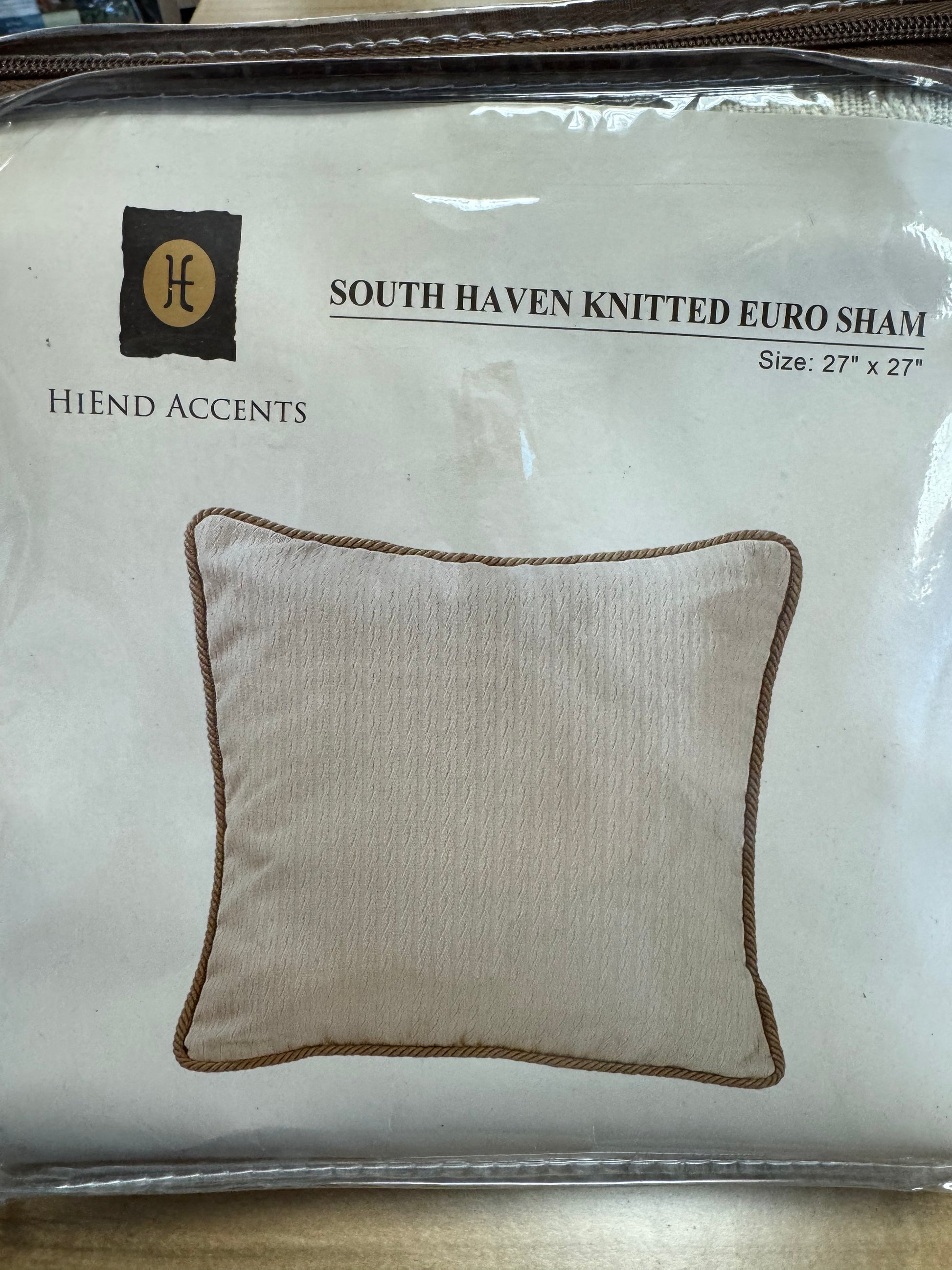 Cream with kaki boarder knitted euro sham pillow cover (27x27in). Perfect for just a touch of texture.